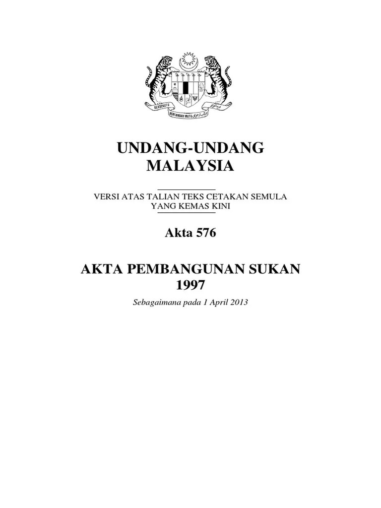 Aktiviti yang ditentukan di bawah akta pembangunan sukan 1997).